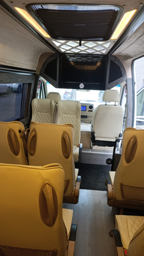 تتسع هذه السيارة حتى 11 اشخص بلإضافة للشخص ذوي الاحتياجات الخاصة, كما يتوفر داخل السيارة شاشة تلفزيون يمكنكم التحكم بها.