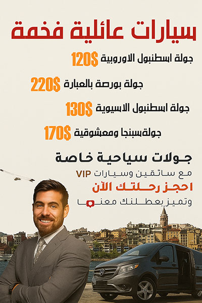 اجرة التوصيل بهذه السيارة من المطار الى وسط المدينة 140 دولار بينما اجرة الجولة الخاصة من وسط المدينة داخل اسطنبول 220 دولار
